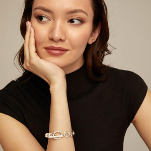 This collection combines different shapes and styles. This allows us to mix and play, to be creative and enjoy every step we take. Creativity embodied in jewelry like this original design that combines pearls and links with a comfortable ring and bar clasp.
