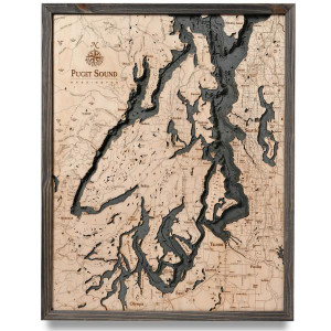One of our favorite Washington state nautical wood maps featuring Puget Sound is seen here as a serving tray. Dazzle your guests by serving them with this single layer bathymetric (underwater topographic map) chart carved in Baltic Birch wood.