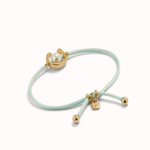 This sterling silver blend and blue mouse tail thread adjustable bracelet features a shell pearl accessory. Made in Spain with a 100% handmade process. From UNOde50's "Ser Diferente" collection which translates in English to: "Be Different.'
